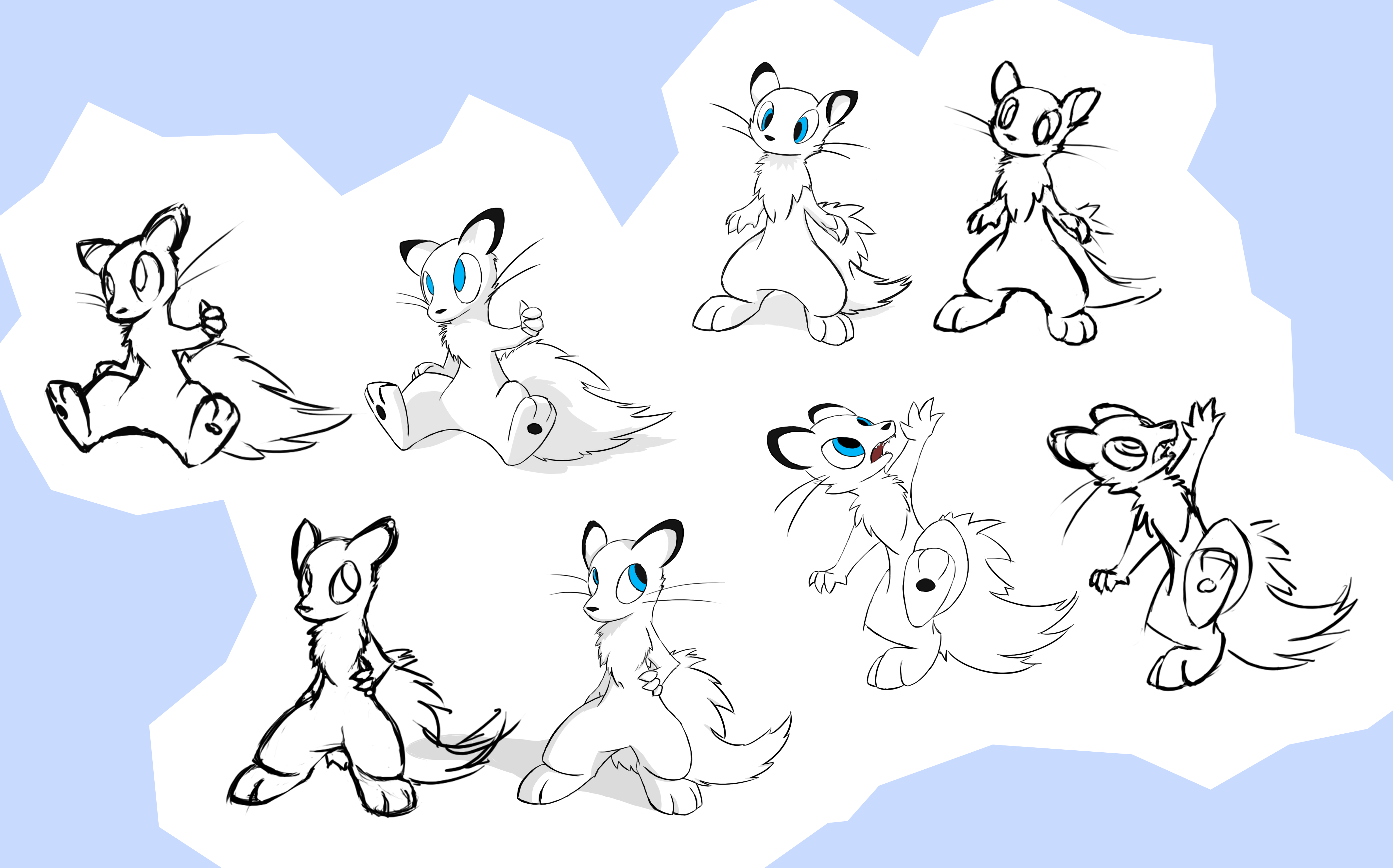 A few different drawings of my weasel character. I was trying to get sort of a character sheet put together. I left the uncolored sketches in, in case you prefer those.