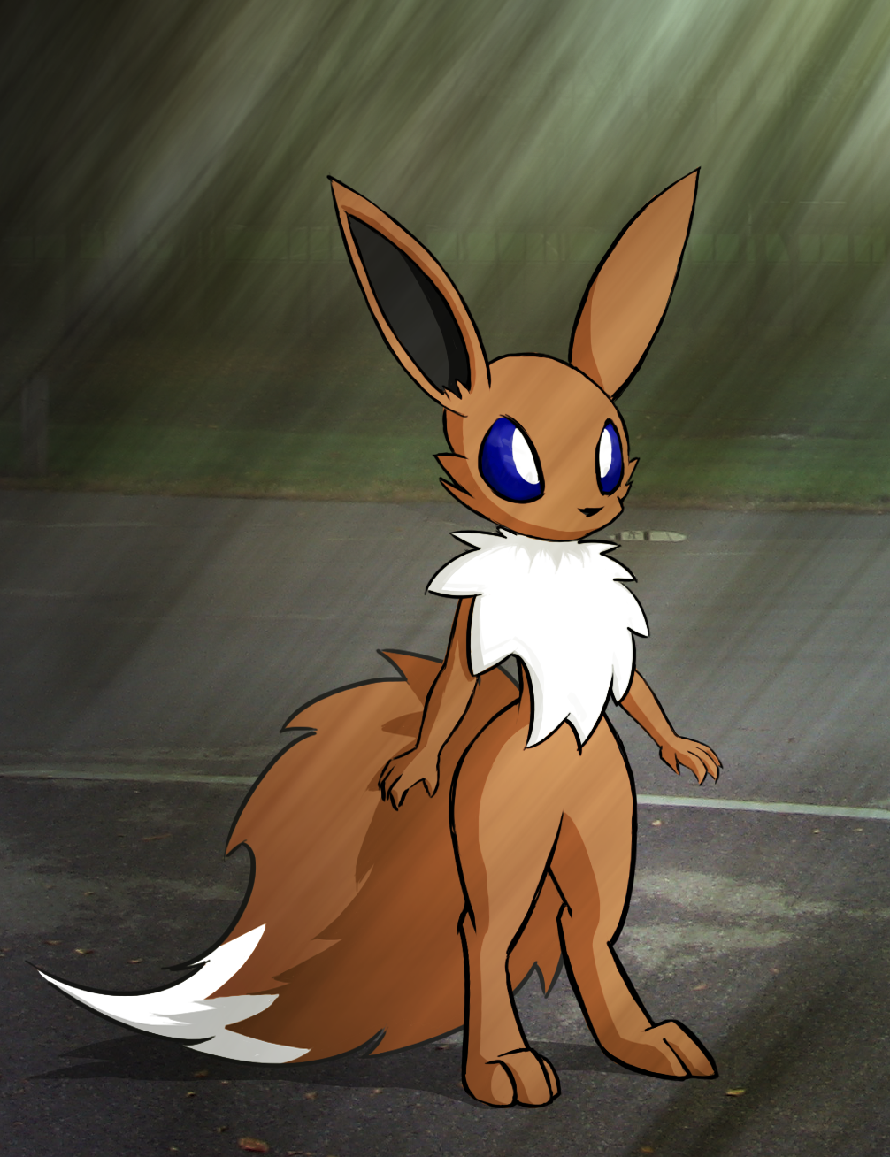 Tried drawing an eevee with bipedal proportions similar to a lucario or braixen. Came out looking a little stiff. My humanoids need work.