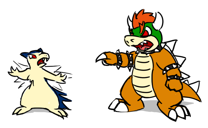 Daily sketch. I have no idea what Bowser and a typhlosion would even argue about.